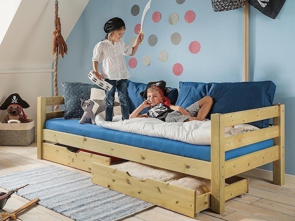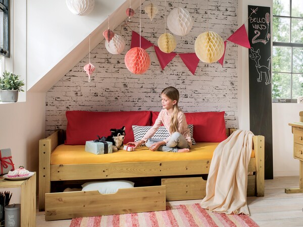 Un lit ado est bien plus qu’un simple couchage, c’est le centre de la nouvelle chambre d’enfant. En tant qu’assise pratique pour les amis, le lit ado en bois massif se transforme en canapé confortable.