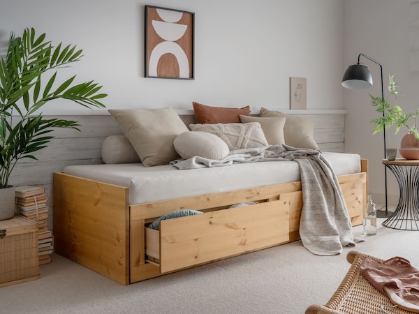 Avec le temps, on accumule de plus en plus de choses, un espace de rangement supplémentaire est donc le bienvenu. Optez pour un lit en bois avec tiroirs pratiques. Pour les petites chambres, ces tiroirs offrent un espace de rangement supplémentaire sans prendre de place. Sous le matelas et le sommier à lattes, tout peut être rangé, des vêtements aux livres.