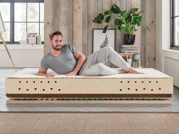 Nos matelas en latex naturel sont fabriqués à partir de 100 % de caoutchouc naturel et convainquent par leur élasticité ponctuelle et de surface. Dans le commerce conventionnel, vous trouverez souvent des matelas en latex en 100 % latex synthétique ou il s'agit d'un matelas en latex composé au maximum de 30 % de caoutchouc naturel. Cela montre bien qu'un matelas n'est pas l'autre.