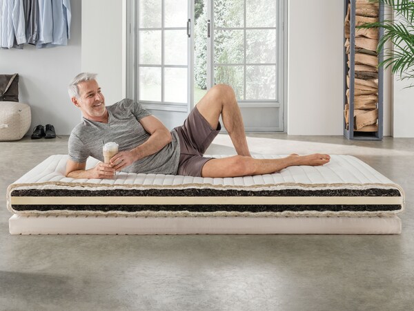 Nos matelas en latex naturel sont fabriqués à partir de 100 % de caoutchouc naturel et convainquent par leur élasticité ponctuelle et de surface. Dans le commerce conventionnel, vous trouverez souvent des matelas en latex en 100 % latex synthétique ou il s'agit d'un matelas en latex composé au maximum de 30 % de caoutchouc naturel. Cela montre bien qu'un matelas n'est pas l'autre.