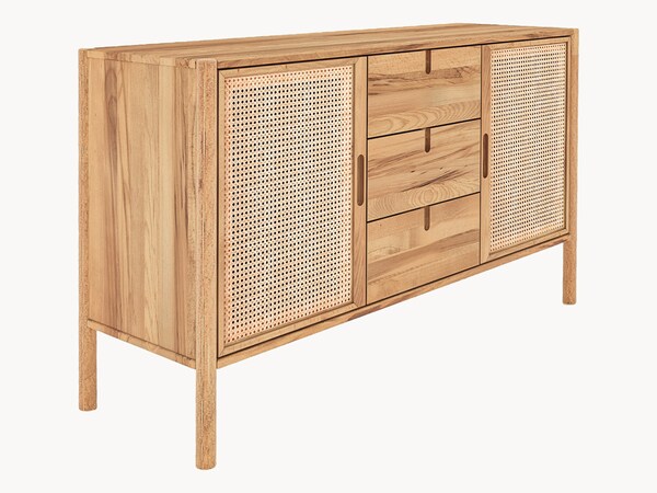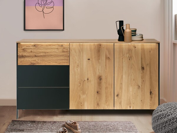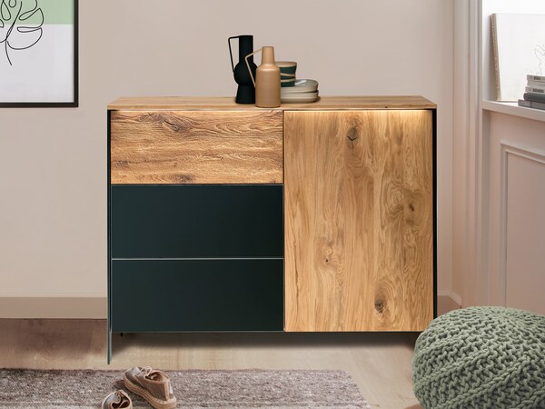Les commodes et les buffets en bois massif sont particulièrement durables et faciles à entretenir. Un chiffon légèrement humide suffit pour les nettoyer régulièrement. Les petites traces d'utilisation peuvent être facilement éliminées à l'aide du kit d'entretien approprié. Un traitement occasionnel à l'huile pour meubles rafraîchit la surface naturelle. Les bois massifs de haute qualité contribuent également à créer une atmosphère agréable dans la chambre à coucher, car ils peuvent absorber et restituer l'humidité.