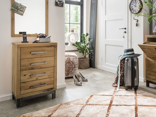 Une commode est presque indispensable dans une chambre à coucher. Elle offre beaucoup d'espace pour ranger proprement le linge, les chemises, les vêtements de nuit ou les accessoires. La disposition claire des tiroirs permet d'avoir chaque vêtement à portée de main. Grâce à sa polyvalence, une commode en bois massif ne trouve pas seulement sa place dans la chambre à coucher. Dans le couloir, la chambre d'amis ou le salon, elle est également très pratique pour ranger et offre en même temps une surface de rangement décorative pour vos objets préférés. Le large choix de designs chez allnatura, du classique au moderne, vous permet de trouver facilement la commode qui convient à votre intérieur.