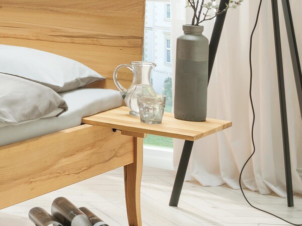 Certaines de nos tables de chevet ne conviennent qu’à des modèles de lit spécifiques, d’autres peuvent être combinées avec n’importe quel modèle de lit. Une table de chevet en bois massif peut également faire office de table d’appoint dans le salon.