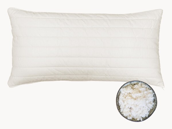 Les petites boules de laine vierge naturelle rendent l’oreiller en flocons de laine particulièrement moelleux. La laine utilisée par allnatura provient de « tonte sur animal vivant ».