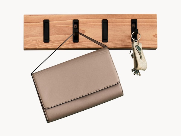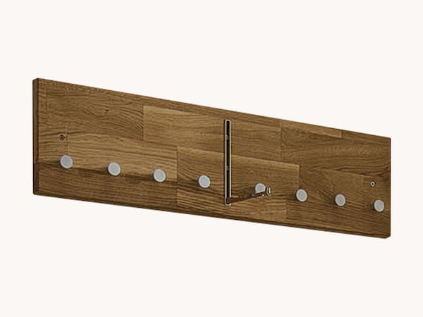 Le chêne sauvage provient du cœur plus coloré du chêne. Son veinage marqué mais raffiné attire le regard sur le meuble d'entrée. Le chêne sauvage est souvent associé à du métal pour un style industriel moderne. Pour un « panneau d'entrée en bois véritable », une patère murale ou une penderie murale en chêne sauvage, les crochets et éventuellement la tringle à vêtements sont adaptés, pour le meuble à chaussures, les poignées et le piètement.