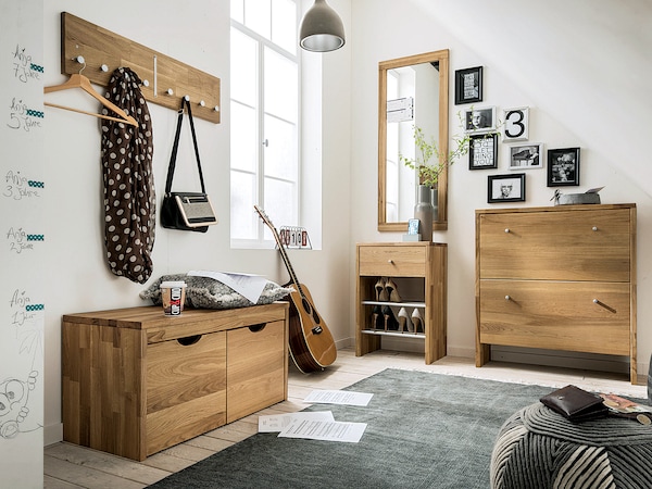 Des ensembles de meubles d'entrée en bois massif polyvalents offrent de la place pour vos vêtements et assurent l'ordre dans l'entrée. Lire la suite ...
