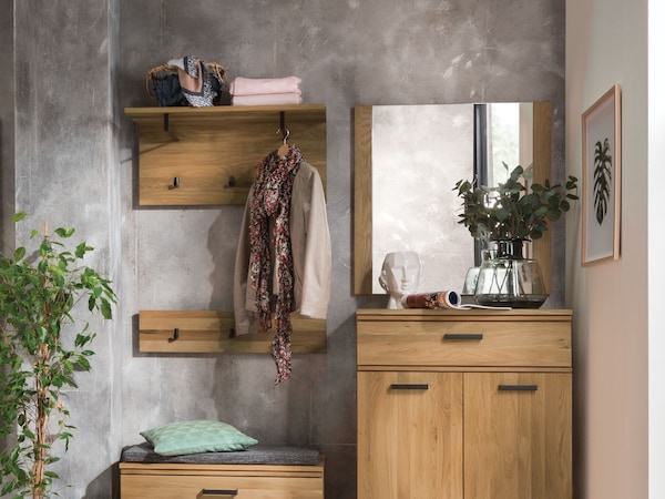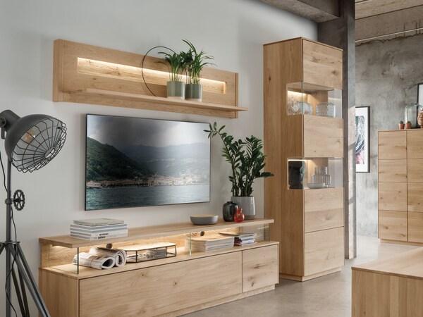 Le bois de pin cembro au parfum agréable est souvent utilisé dans la chambre à coucher, pour le lit et l’armoire. Pourquoi ne pas l’adopter aussi pour une commode ou un meuble TV dans l’entrée ?