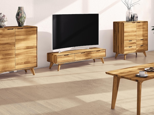 Profitez de la longévité des véritables meubles en bois massif. Un meuble peut être qualifié de massif lorsque la plus grande partie du meuble est fabriquée en bois massif. Ceci est garanti par une norme DIN appropriée. Le contreplaqué et les panneaux de particules ne sont pas considérés comme massifs et doivent être signalés comme tels. Outre leur aspect unique, les meubles en bois massif assurent un climat intérieur optimal. Chez allnatura, vous trouverez exclusivement des meubles en bois massif de haute qualité.