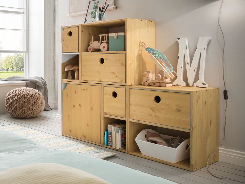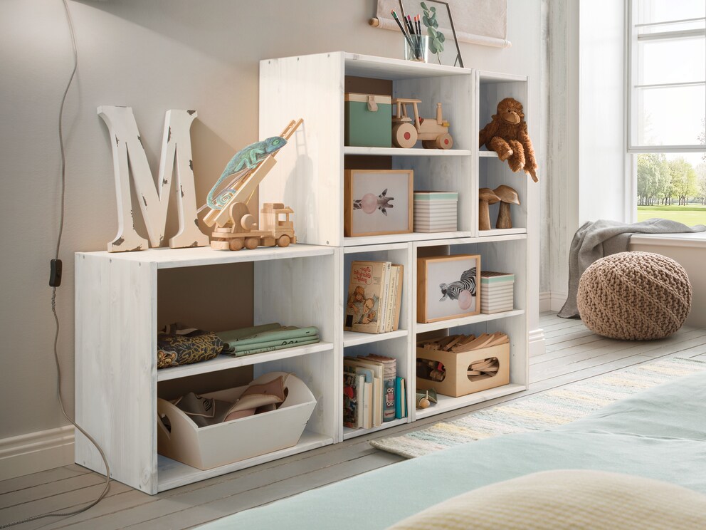 Grâce à ce configurateur 3D pratique, vous pouvez laisser libre cours à votre imagination et créer votre nouveau système d'étagères cubiques sur mesure. Concevez votre solution d'aménagement parfaite en beau bois de pin naturel ou blanc. Idéal non seulement pour la chambre d'enfant ou d'adolescent, mais aussi pour toute la maison. Essayez-le dès maintenant !