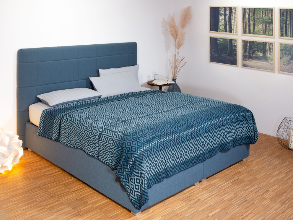 Le couvre-lit Toluca de 220x250 cm orne ici un lit à boxspring allnatura de 180 cm de large