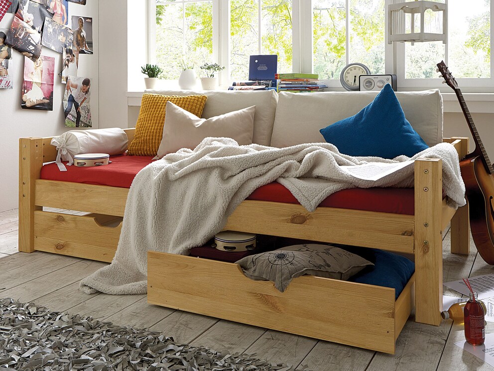 Lit simple polyvalent en hêtre ou pin, aussi en blanc