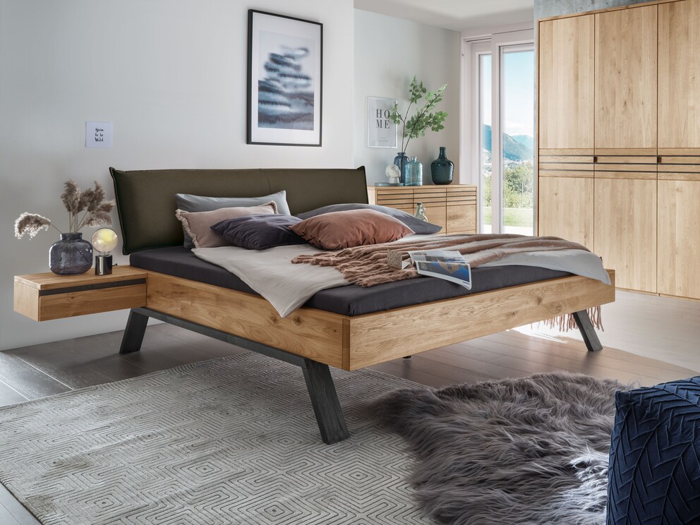 Choisissez la version tendance ou votre favori parmi quatre têtes de lit. Mettez en valeur le veinage unique du noble chêne sauvage avec les têtes de lit en bois. Ou adossez-vous confortablement à votre luxueuse tête de lit en tissu et savourez votre café du matin au lit.