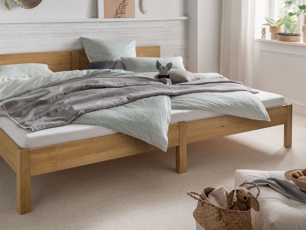 Le point fort de « Familia » est sans conteste sa grande surface de couchage, sur laquelle 3 ou 4 personnes peuvent s’installer confortablement – pour des nuits pleines de douceur, pour des batailles d’oreillers endiablées et de magnifiques châteaux de coussins. Ce lit extra-large deviendra le centre de nombreux beaux souvenirs et, grâce à sa fabrication de qualité « Made in Germany » ainsi qu’à son beau design épuré, vous en profiterez très longtemps.