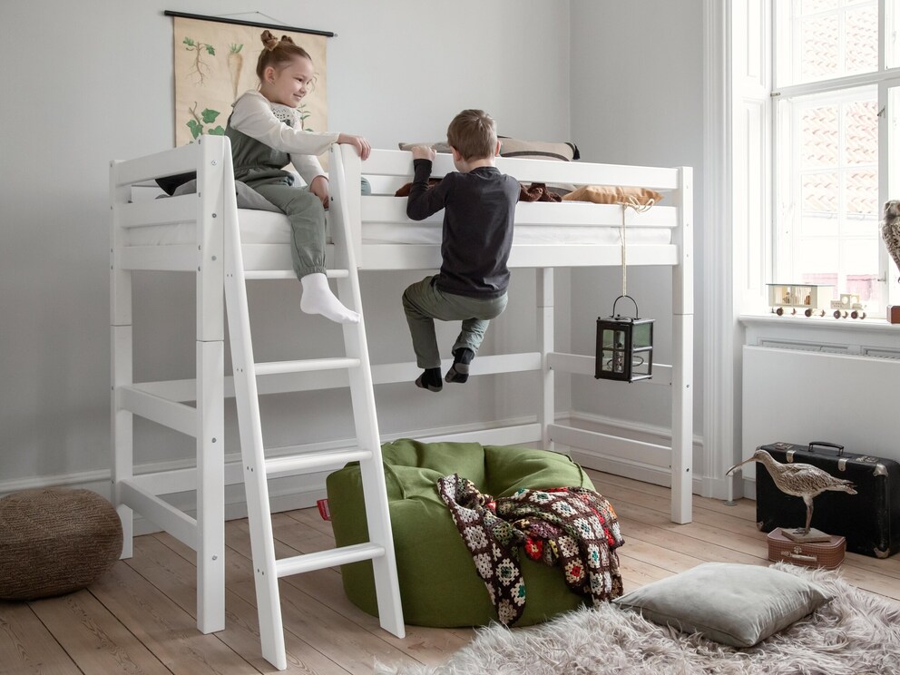 Le lit mi-hauteur marque des points non seulement comme couchage, mais aussi grâce à l’espace généreux situé en dessous. Utilisez cette surface supplémentaire pour un coin de jeu plein de fantaisie ou créez un espace de rangement supplémentaire pour les jouets et les livres. Avec les rideaux de jeu, coussins et lumières disponibles en option, vous transformez la zone en une cachette douillette qui invite à jouer et à se détendre.
