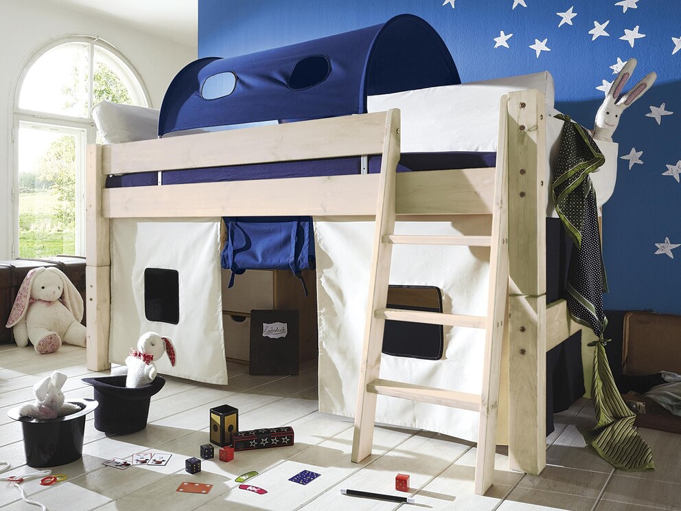 Avec notre mini-mezzanine « Pico », vous pouvez déjà offrir aux enfants d’âge maternelle leur rêve de lit mezzanine. Sûr, joli et avec beaucoup de plaisir de jeu.