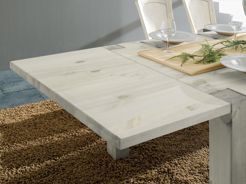 Pratique : grâce aux rallonges, vous pouvez facilement agrandir la belle table. Ainsi, rien ne s’oppose à une soirée conviviale avec vos invités.