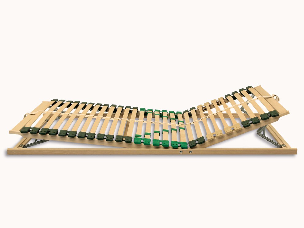 Les lattes sont montées dans des embouts en caoutchouc sans PVC, mobiles et à grande amplitude, qui garantissent un soutien optimal de la colonne vertébrale dans chaque position de sommeil. Notre « Allnaturaflex » dispose également d’un abaissement d’épaule flexible et d’une zone de confort pour le bassin avec renfort de la zone centrale, soutenant ainsi de façon optimale la fonction de votre matelas multizones. Vous pouvez également obtenir « Allnaturaflex » avec une tête et un pied réglables – cependant avec des ferrures en métal, un réglage sans métal n’étant malheureusement pas techniquement possible en raison de la faible hauteur du cadre.