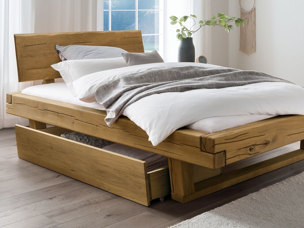 ...dans les tiroirs pratiques et spacieux. Oui, vous avez bien lu – tiroirs ! Car vous recevez ici deux tiroirs de haute qualité. Ainsi, vous pouvez utiliser tout l’espace sous votre lit à poutres « Tegora ». Car quoi de plus judicieux que d’avoir toujours du linge de lit frais à portée de main, là où vous en avez besoin ?
