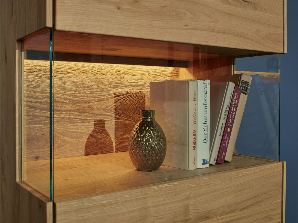 Ce variateur crée une ambiance pleine de charme dans votre intérieur. Assorti au buffet haut, au buffet bas, au meuble TV, à la vitrine et à la composition murale « Bassano ». La variante 01 vous permet de varier l'intensité lumineuse d'un meuble, tandis que la variante 02 vous permet de régler simultanément l'éclairage de trois meubles « Bassano ».