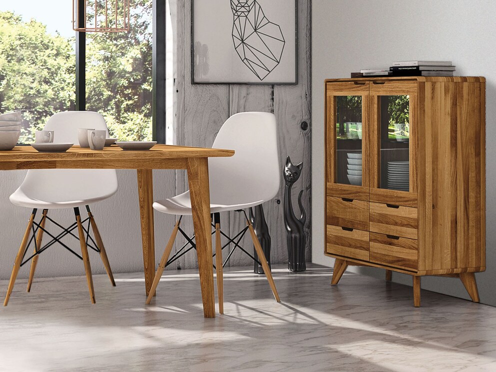 La vitrine en verre « Tario » en cœur de hêtre met parfaitement en valeur votre vaisselle